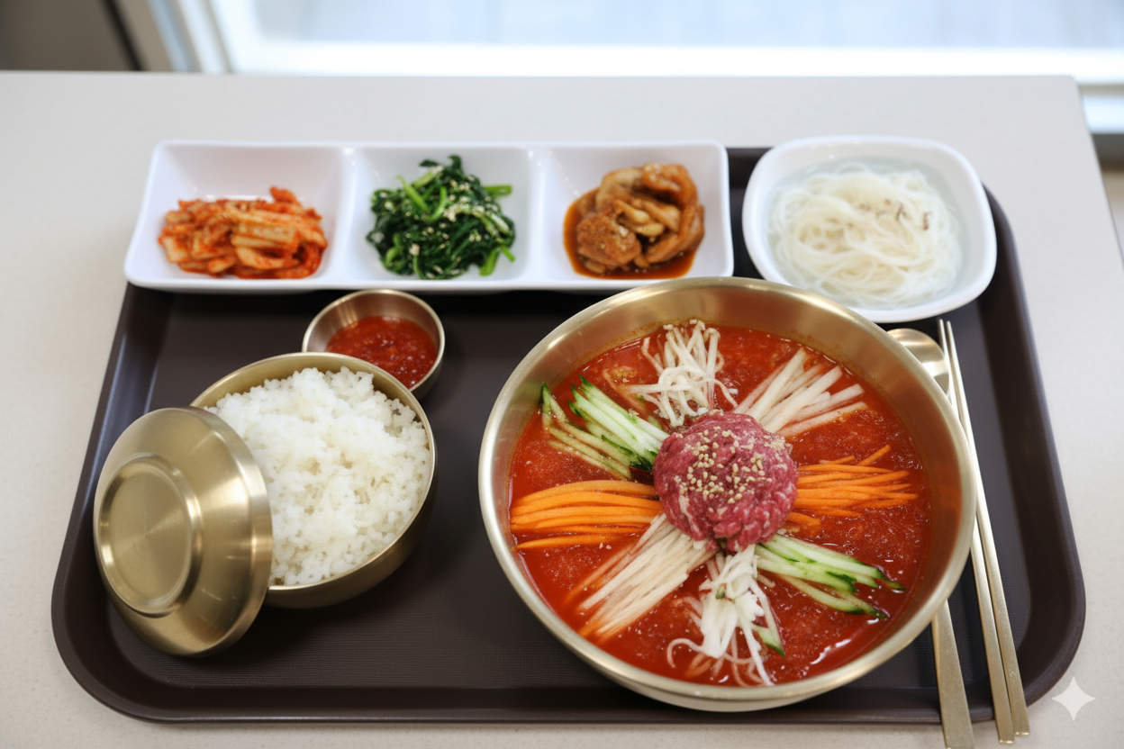 국내산 한우 육회와 새콤한 육수가 조화를 이루는 시원한 물회. 아삭한 채소가 더해져 사계절 내내 인기 있는 메뉴입니다.