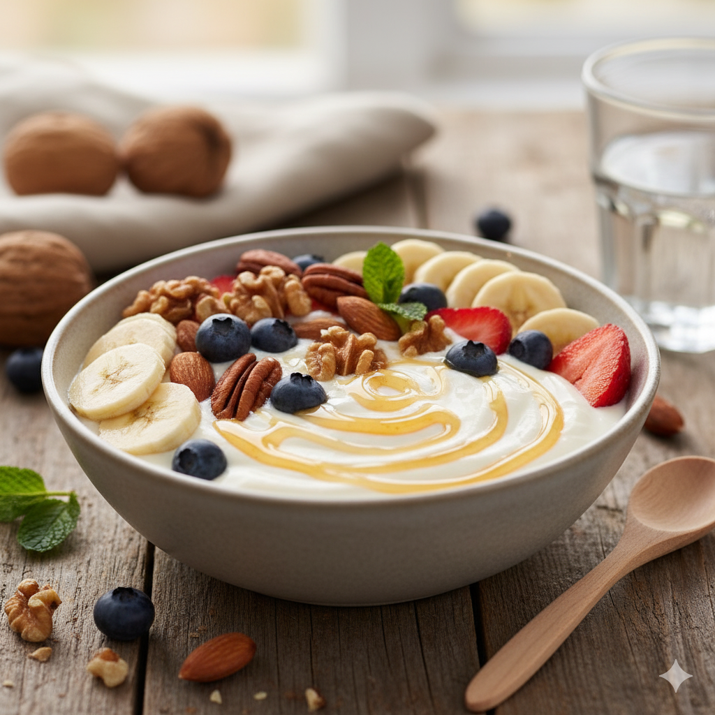 단백질·프로바이오틱스가 풍부해 포만감과 장 건강에 유리합니다. 무가당 제품을 고르고, 베리류·견과류와 조합하면 간식·아침 대용으로 좋습니다.