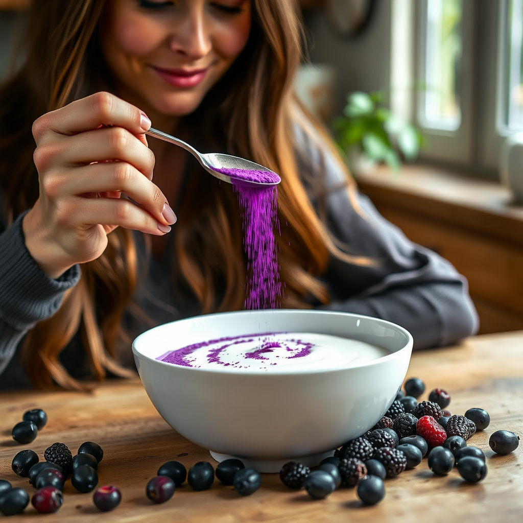 분말은 요거트, 우유, 식물성 요거트, 스무디, 선식 등에 1~2티스푼만 넣어도 색과 풍미가 살아납니다. 준비·세척·보관의 번거로움이 적어 꾸준히 먹기 가장 쉬운 형태이며, 떫은맛도 부드럽게 중화됩니다. 아침·간식·운동 후 등 다양한 루틴에 얹기 좋아 체감 효능을 높이는 데 유리합니다.